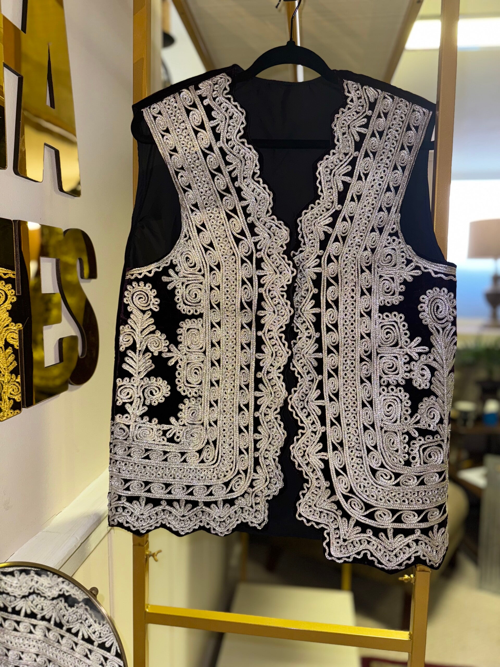 A beautifully crafted Afghan handmade vest featuring intricate embroidery, vibrant colors, and traditional patterns. Each piece is unique, showcasing authentic Afghan artistry and cultural elegance.